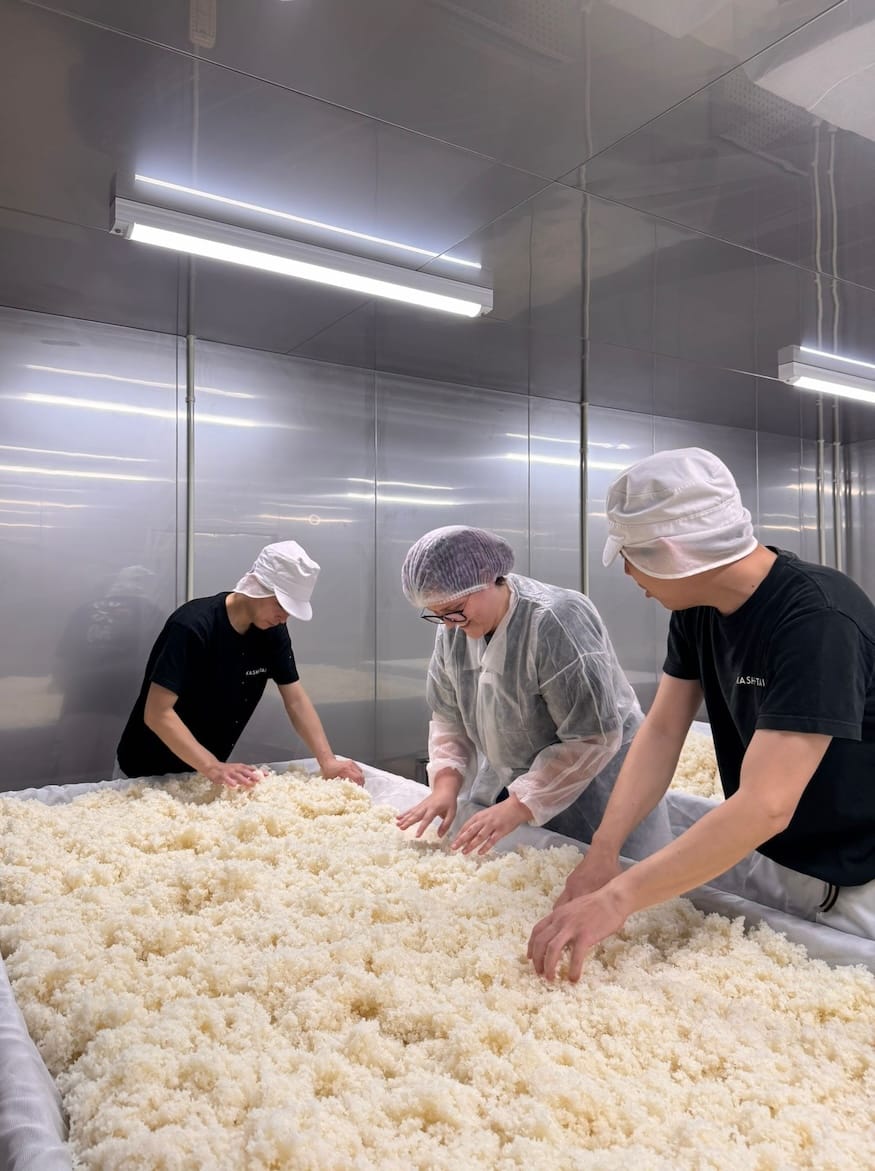 Yonezawa-san: Now the culture has changed. My team is... all of the year, is a normal employee. They are studying the sake brewing and making the sake.