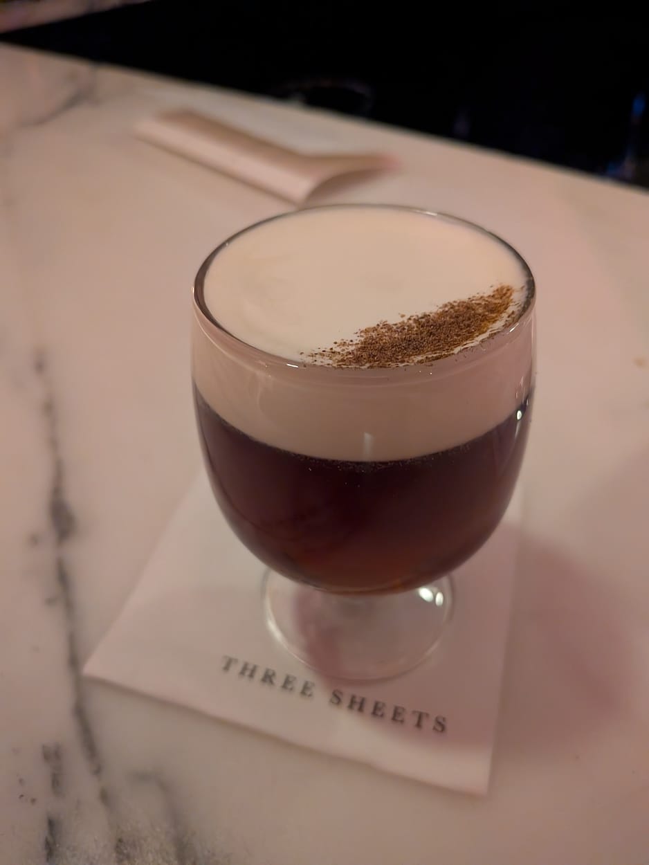 The menu is broken into three categories (one sheet, two sheets, and so on) roughly based on how alcohol-forward it is. Their chai-infused riff on an Irish Coffee was one I liked so much that I went back for it again a week later.